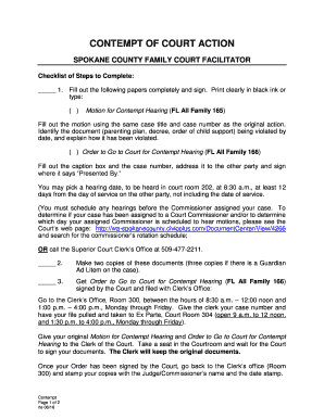 Fillable Online spokanecounty CONTEMPT OF COURT ACTION Spokane County