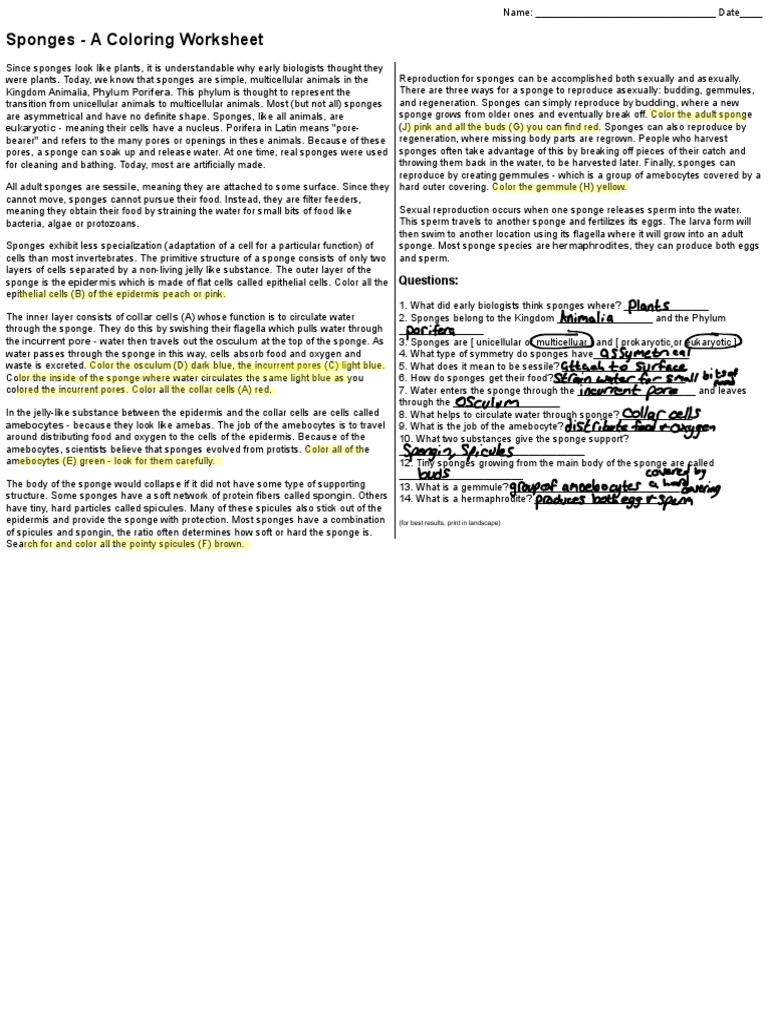 Sponge Anatomy Worksheet Answers Anatomy Worksheets