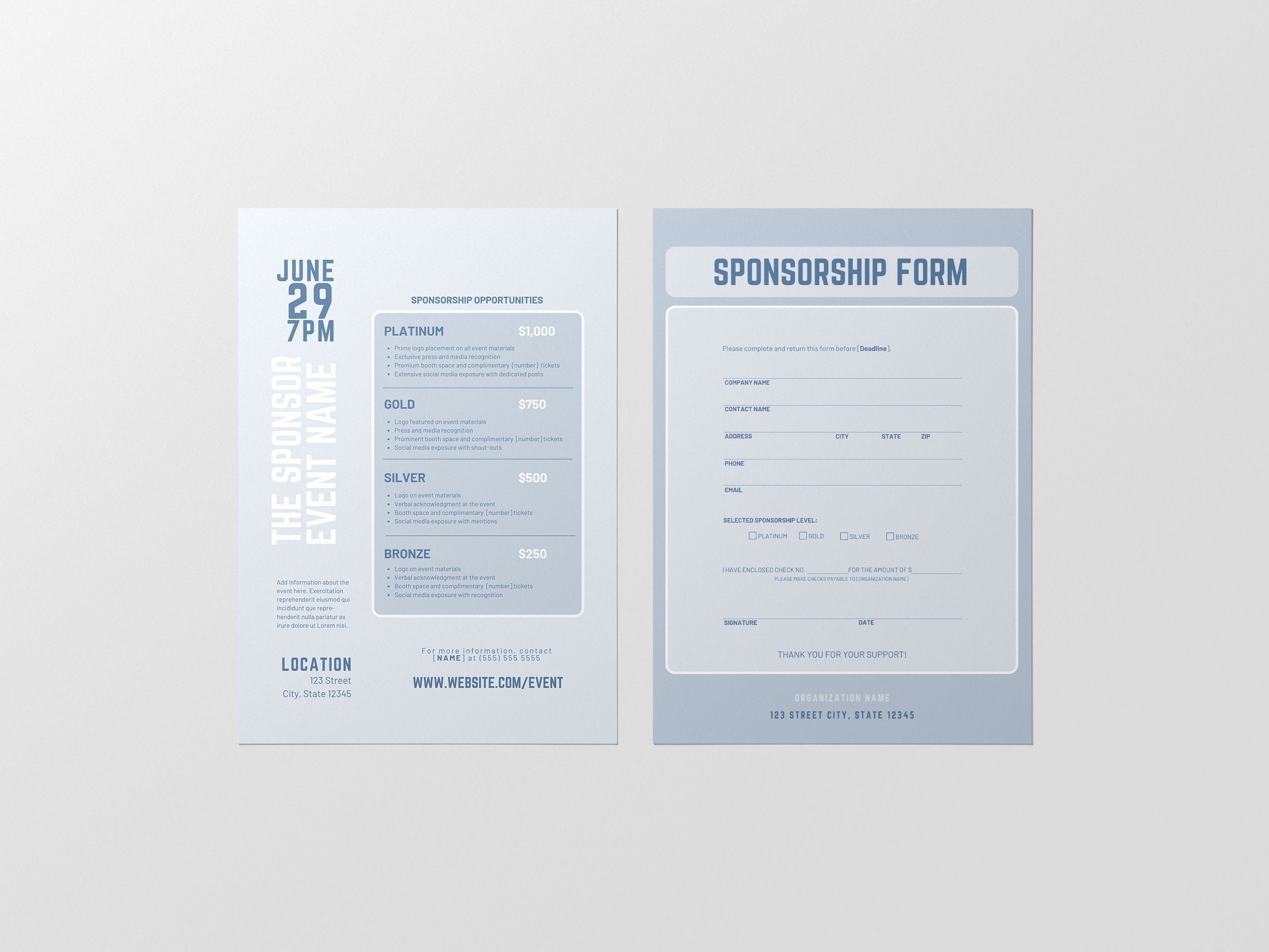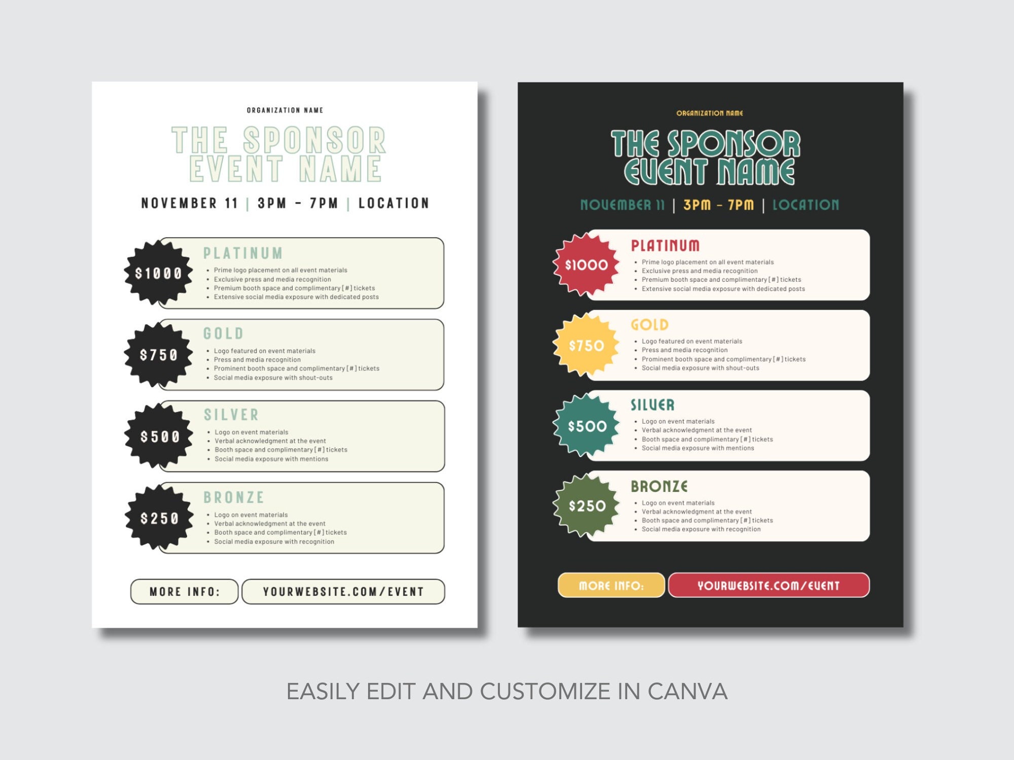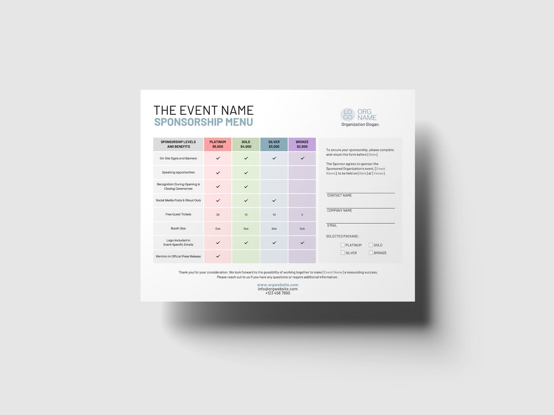 Sponsorship Levels Template Canva Template Editable Sponsor