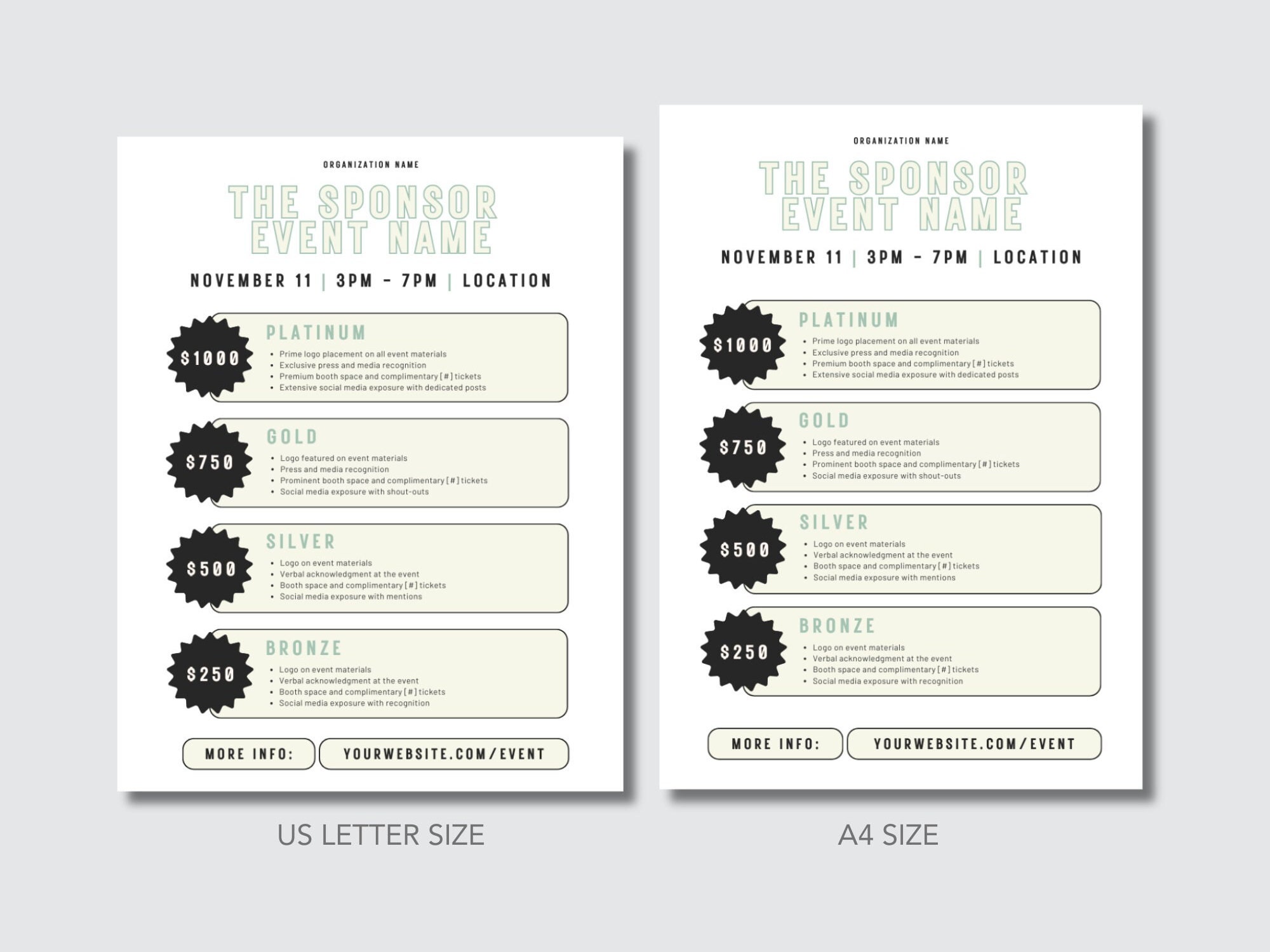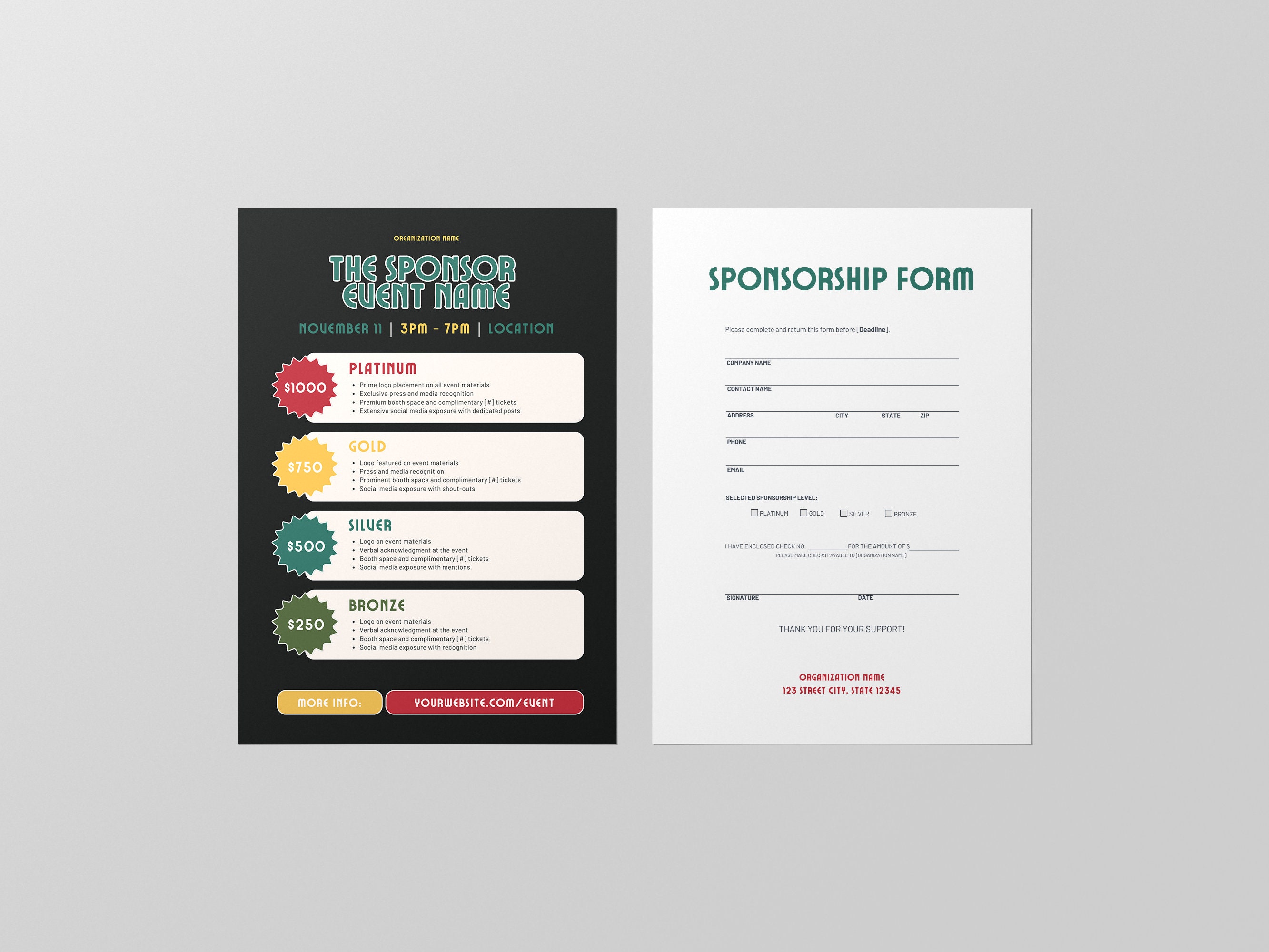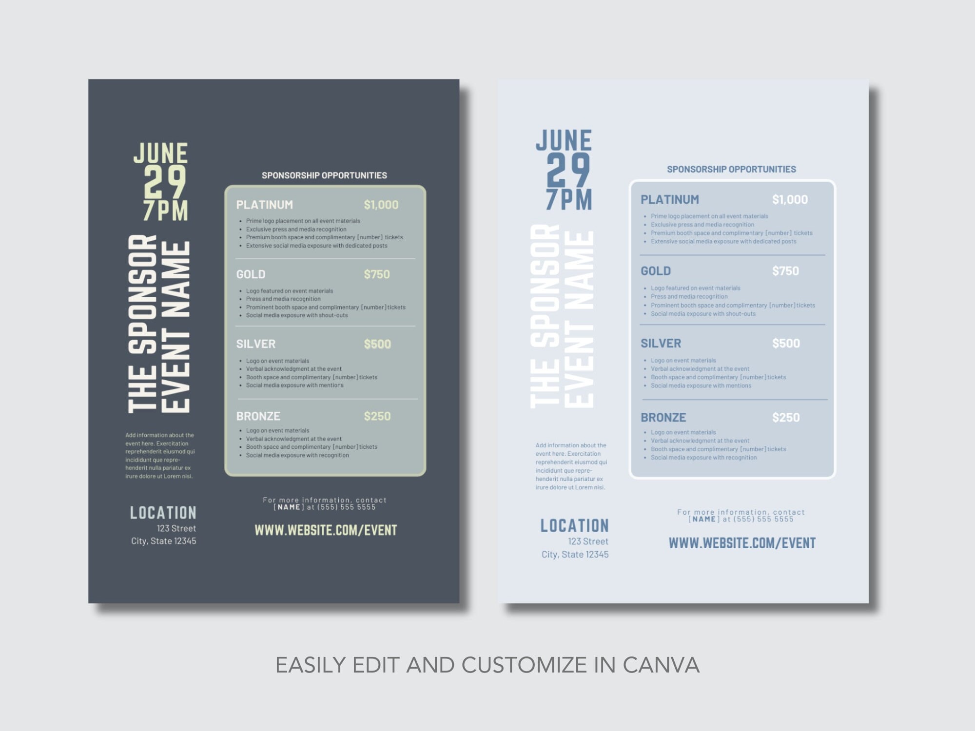 Sponsorship Levels Template Canva Template Editable Sponsor