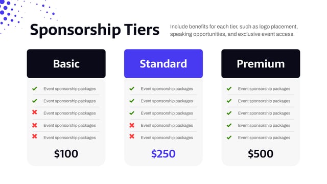 Sponsorship Tier Template SlideBazaar