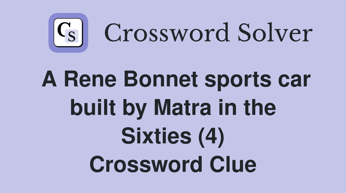 A Rene Bonnet sports car built by Matra in the Sixties (4) Crossword