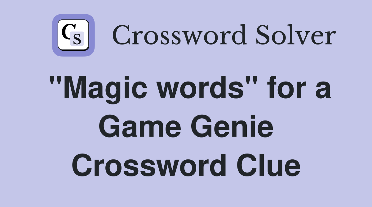 quot Magic words quot for a Game Genie Crossword Clue Answers Crossword Solver