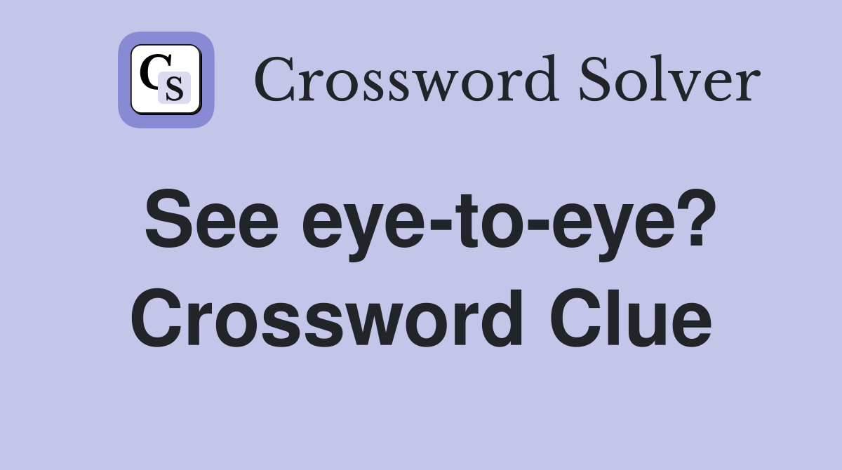 See eye to eye? Crossword Clue Answers Crossword Solver