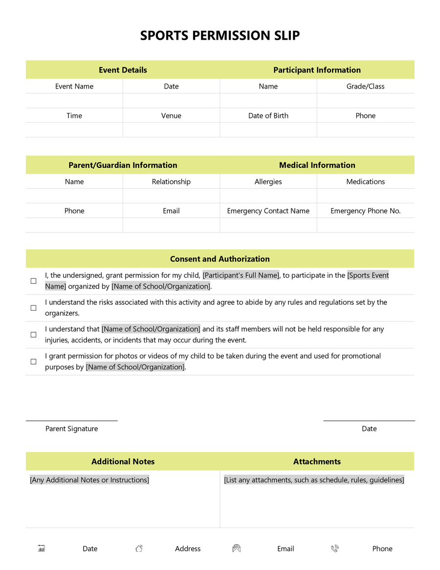Sports Permission Slip Template