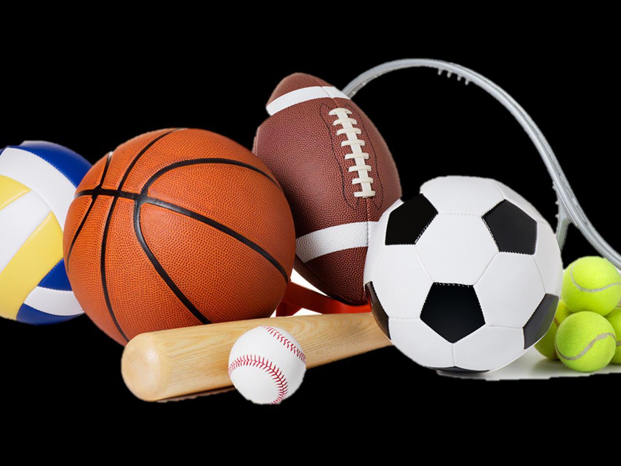 Download Different Sports Equipment On Blue Background Wallpapers com