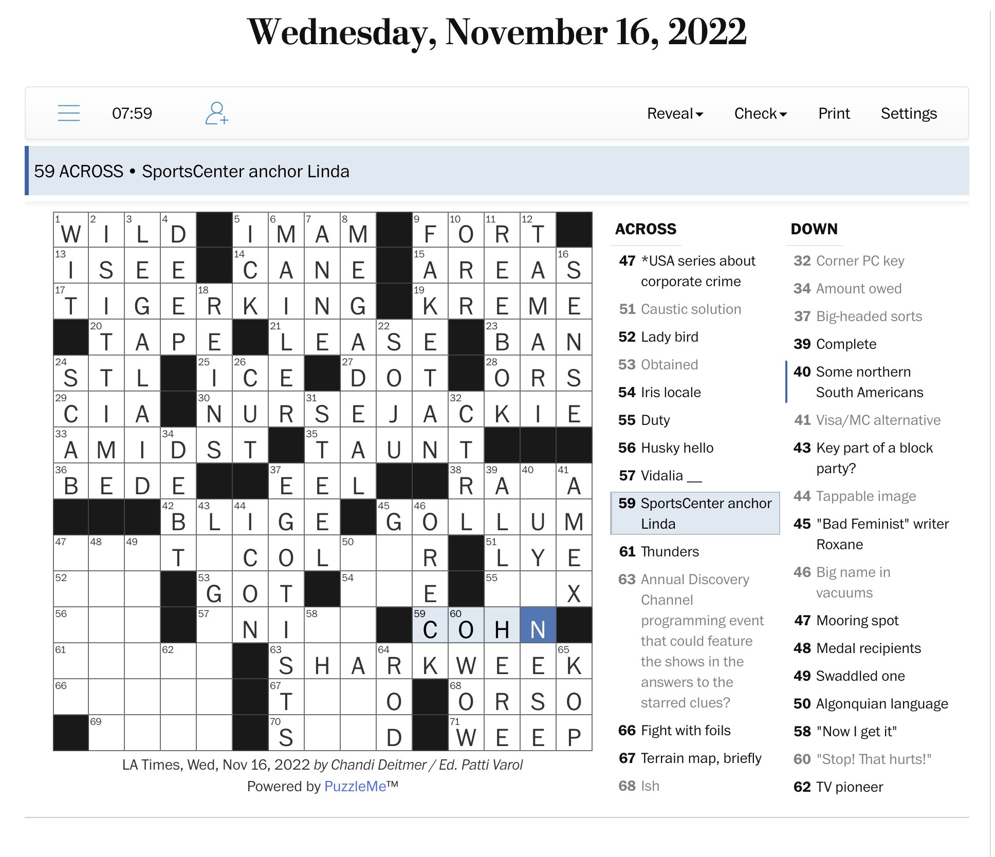 Linda Cohn on Twitter: quot Look who was 59 across in yesterday s latimes