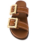 Schutz Enola Sporty Leather Big Bamboo Buckle Hardware Slide Sandals