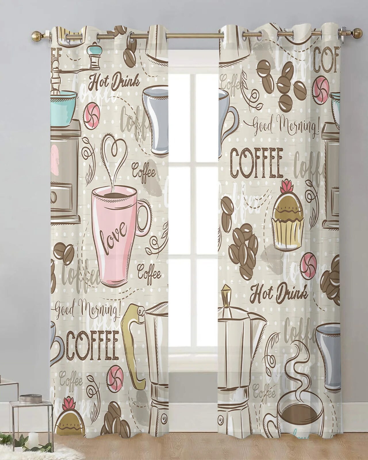 Cups Coffee Beans Cake Candy Spot Voile Hanging Curtain Living Room