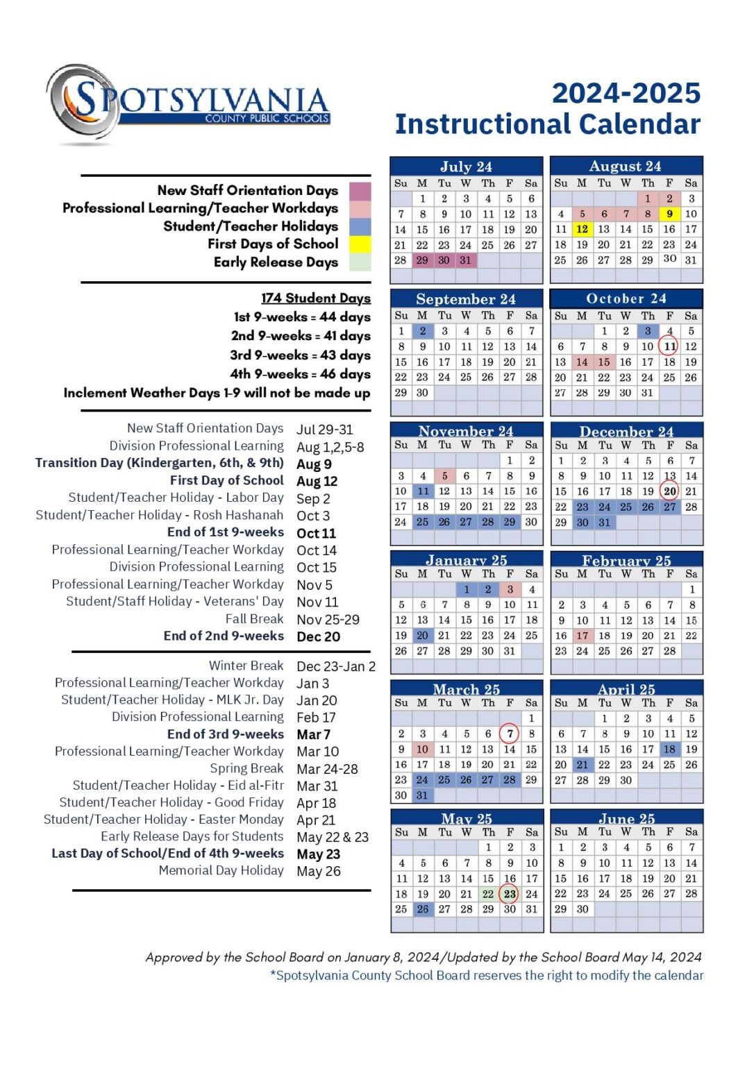 Spotsylvania County Public Schools Calendar 25 26 Revised pdf EduCounty