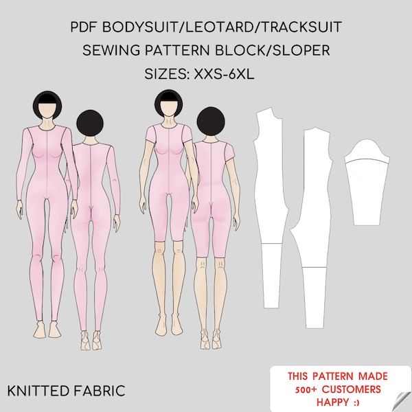 Catsuit Sewing Pattern Set Size XS 6X Seamless Catsuit Bodysuit