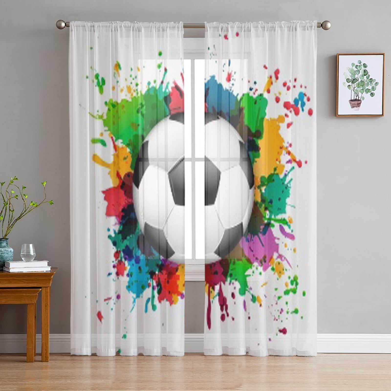 Soccer Ball With Colorful Spray Paint Template Chiffon Sheer Curtains