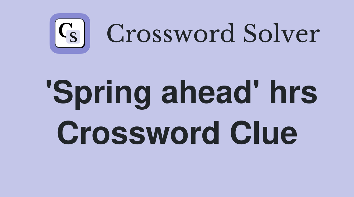 Spring ahead hrs Crossword Clue Answers Crossword Solver
