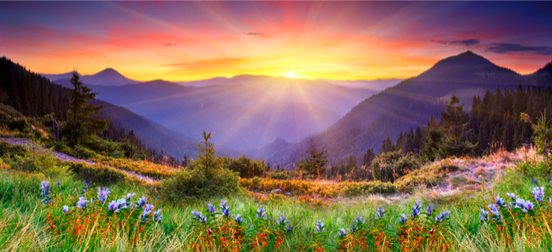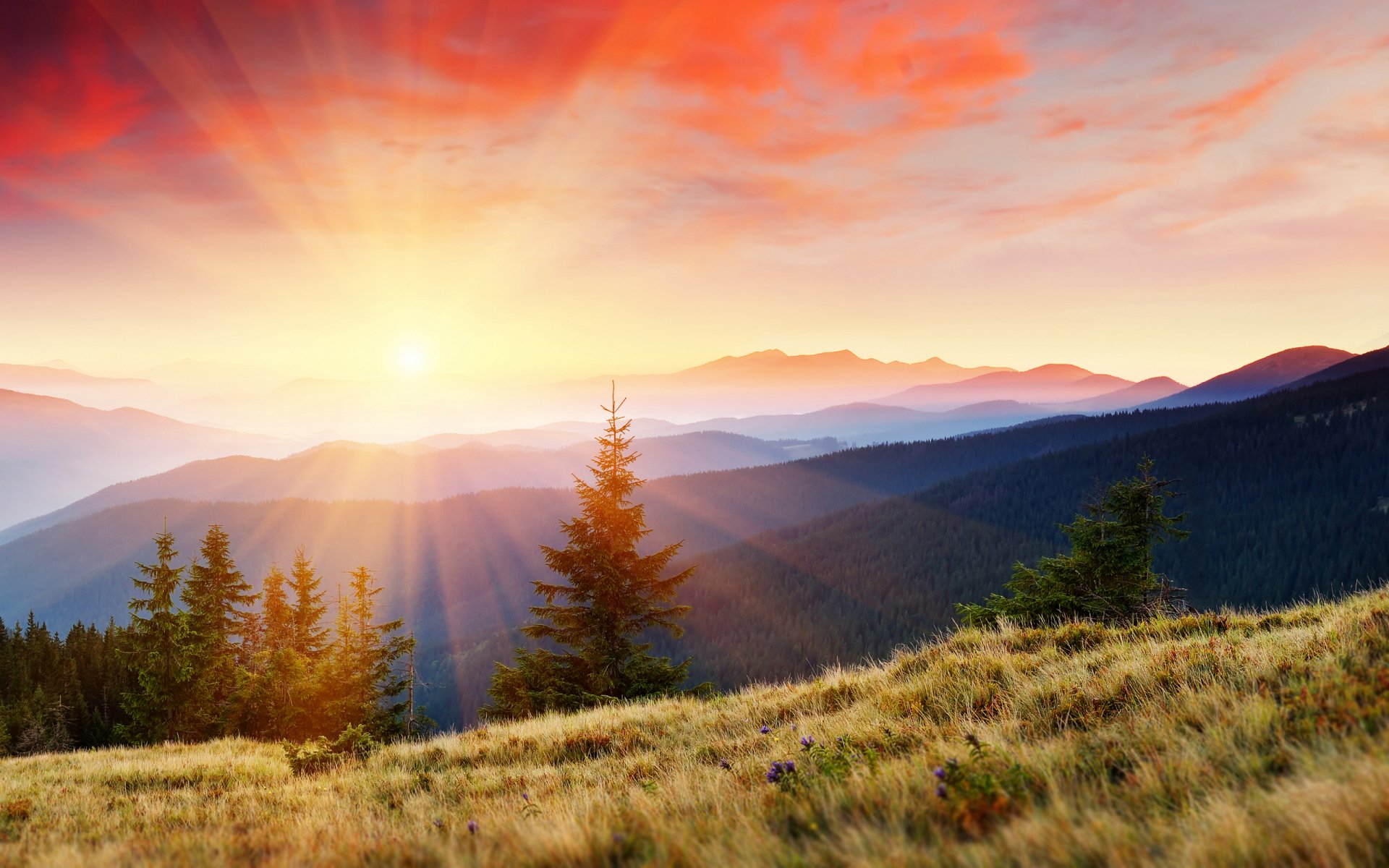 Wallpaper Sunrise dawn mountains grass flowers 2560x1920 Picture Image