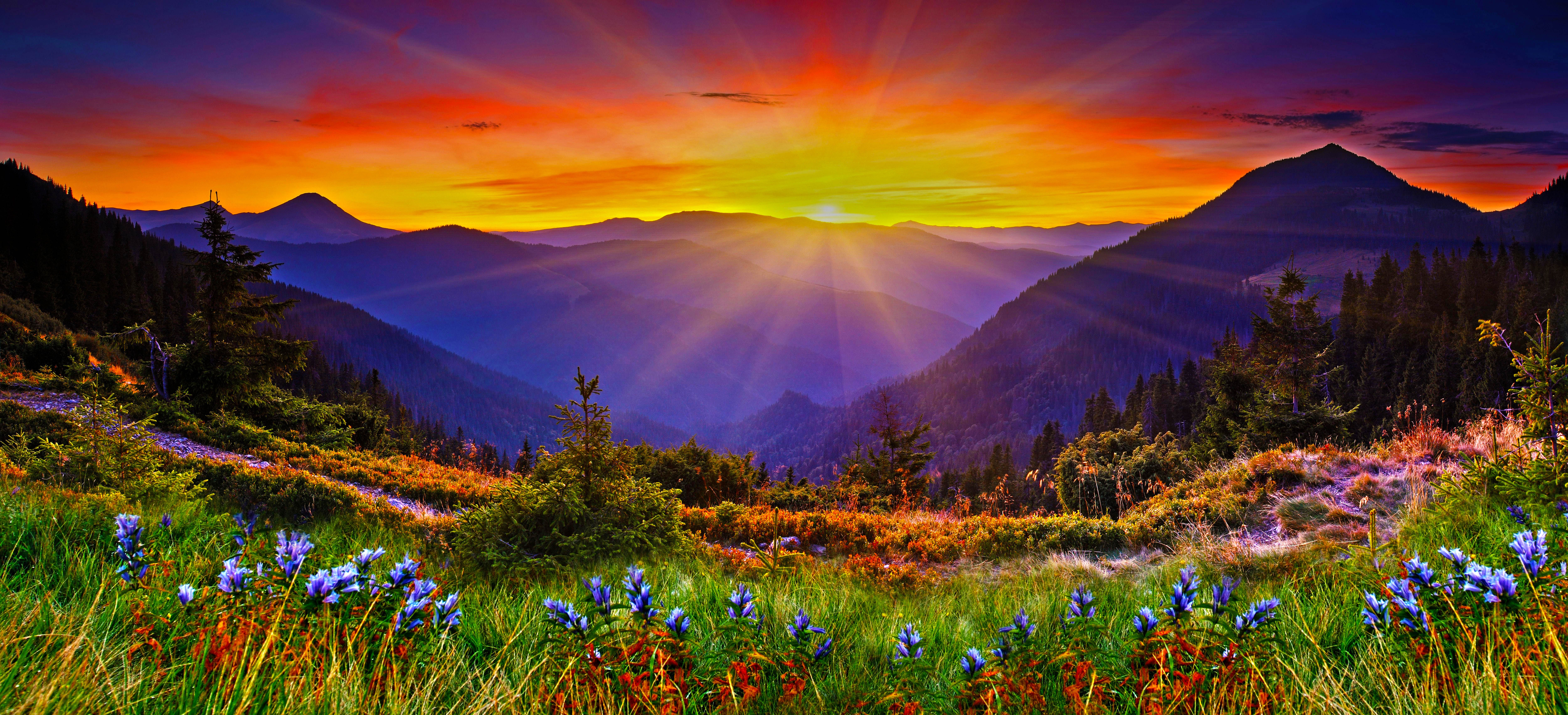 Обои панорама закат цветы 1920x1080 Full HD от photomonstr картинки
