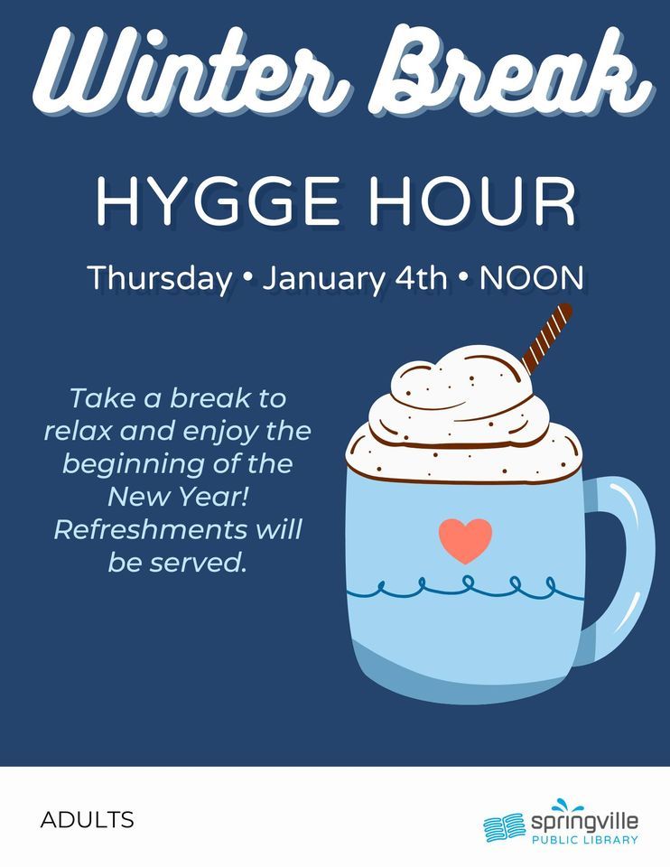 Winter Break Hygge Hour (Adults) Springville Library January 4 2024
