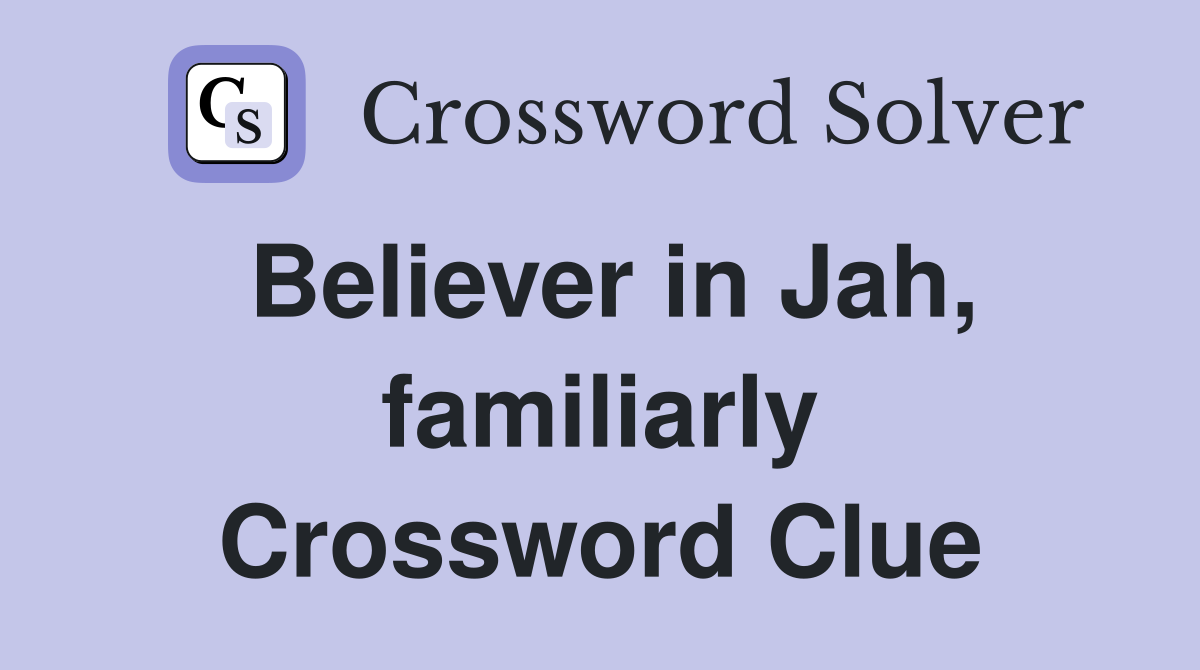 Believer in Jah familiarly Crossword Clue Answers Crossword Solver