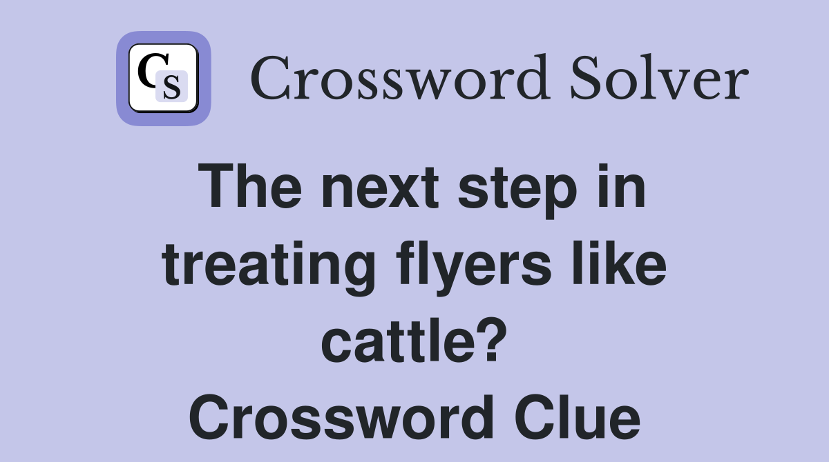 The next step in treating flyers like cattle? Crossword Clue Answers