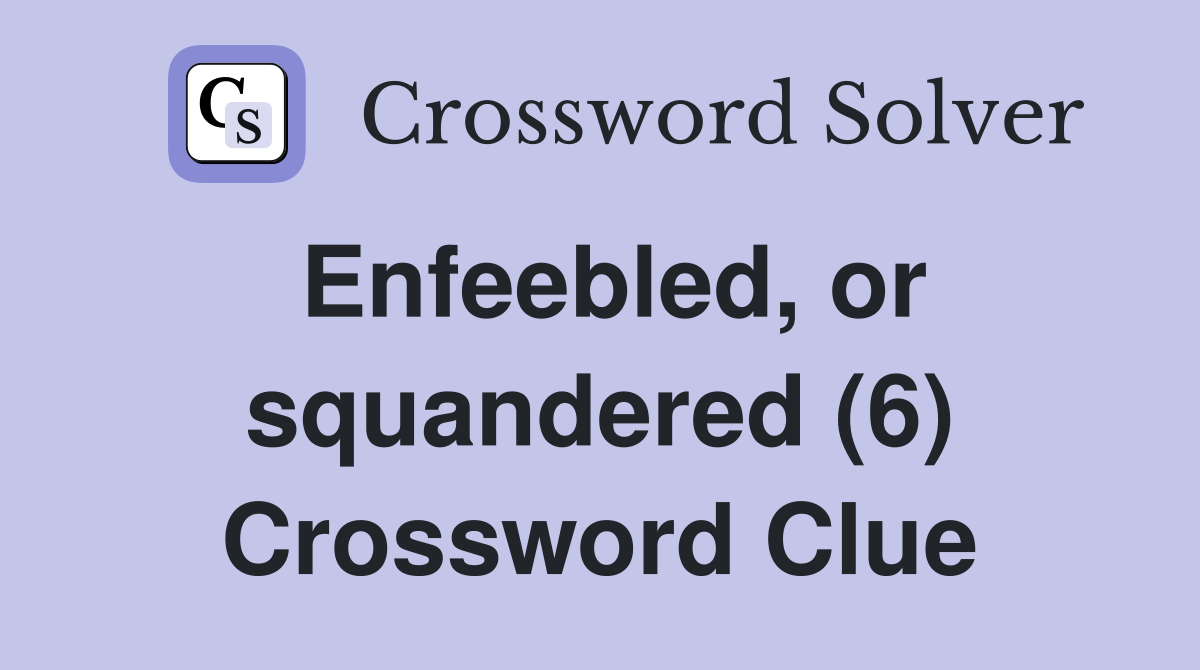 Enfeebled or squandered (6) Crossword Clue Answers Crossword Solver