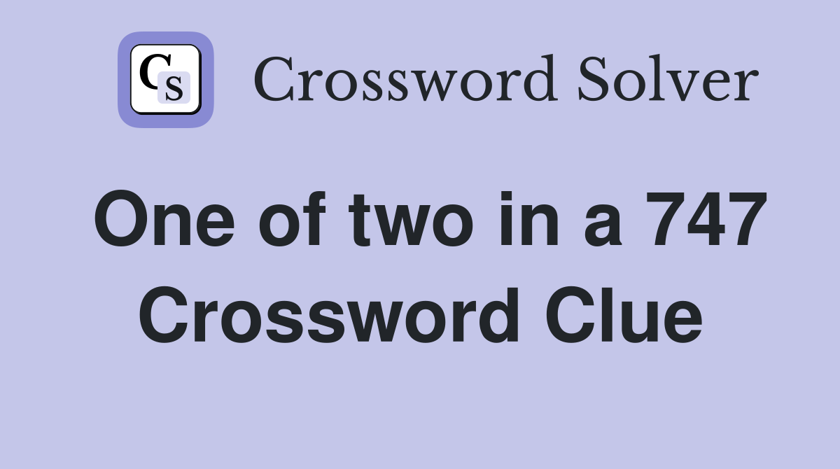 One of two in a 747 Crossword Clue Answers Crossword Solver