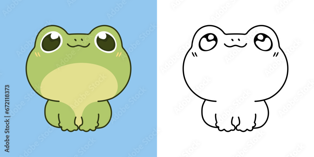 Cartoon Frog Clipart for Coloring Page and Illustration Clip Art