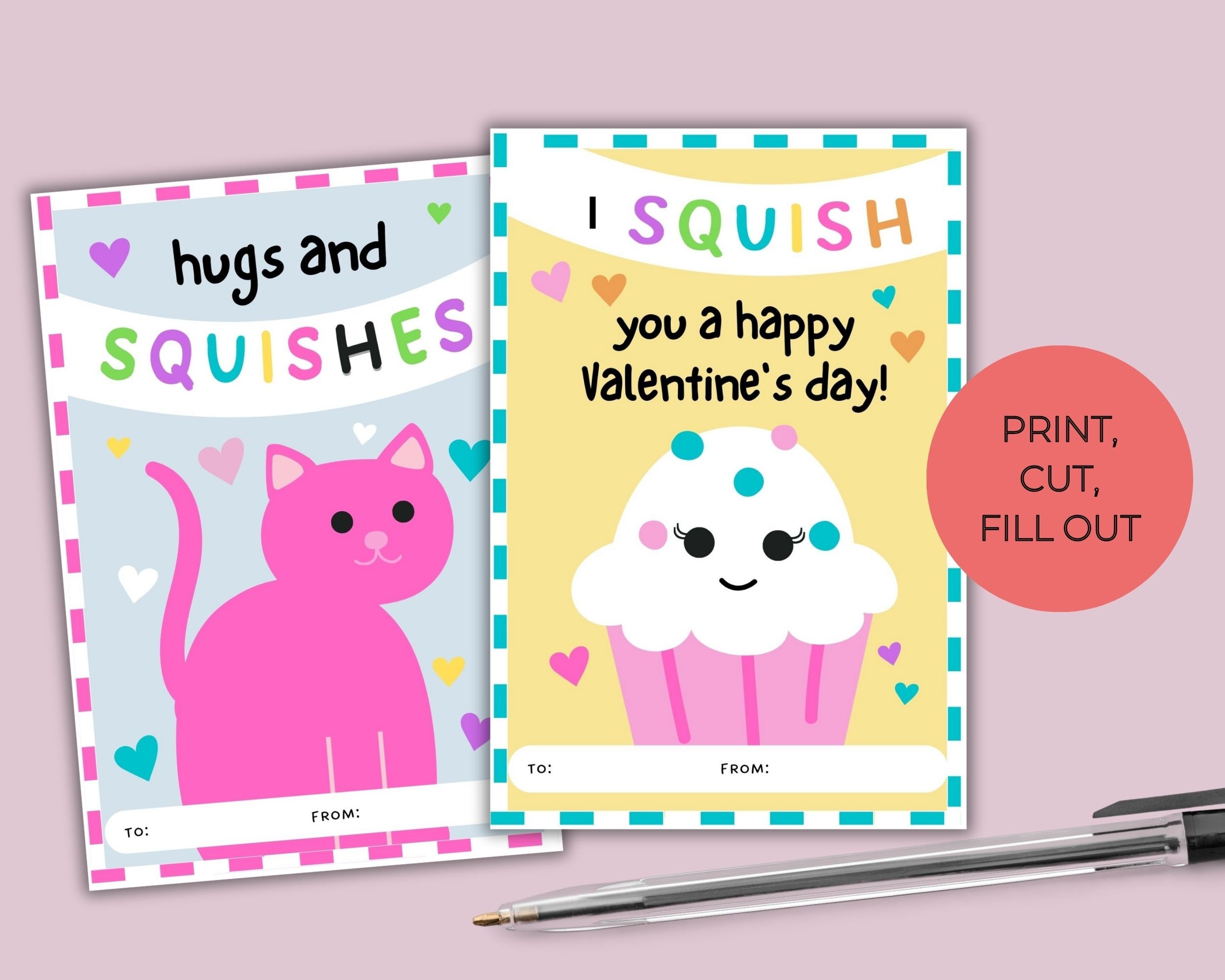 Squish Squishy Valentine Printable Class Kids Valentines Digital
