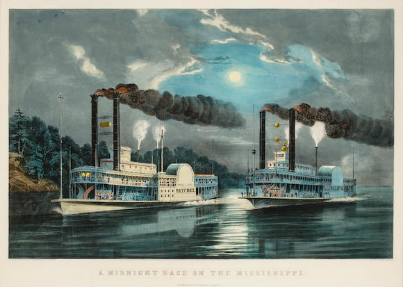 Bonhams : Currier Ives A Midnight Race on the Mississippi hand