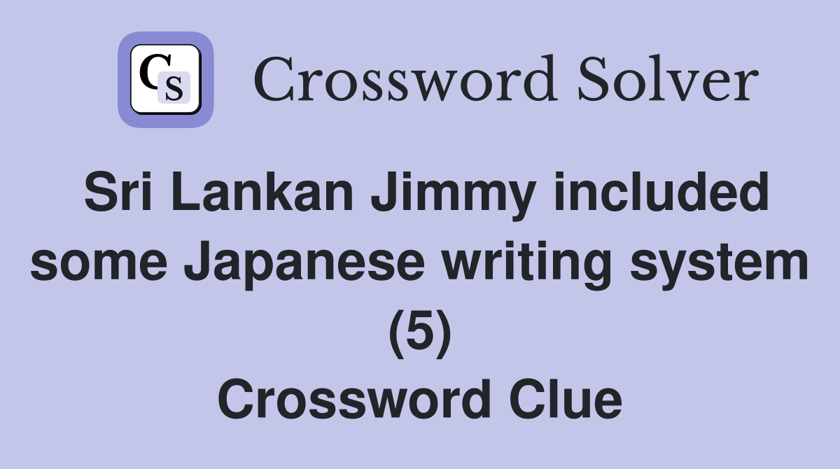 Sri Lankan Jimmy included some Japanese writing system (5) Crossword