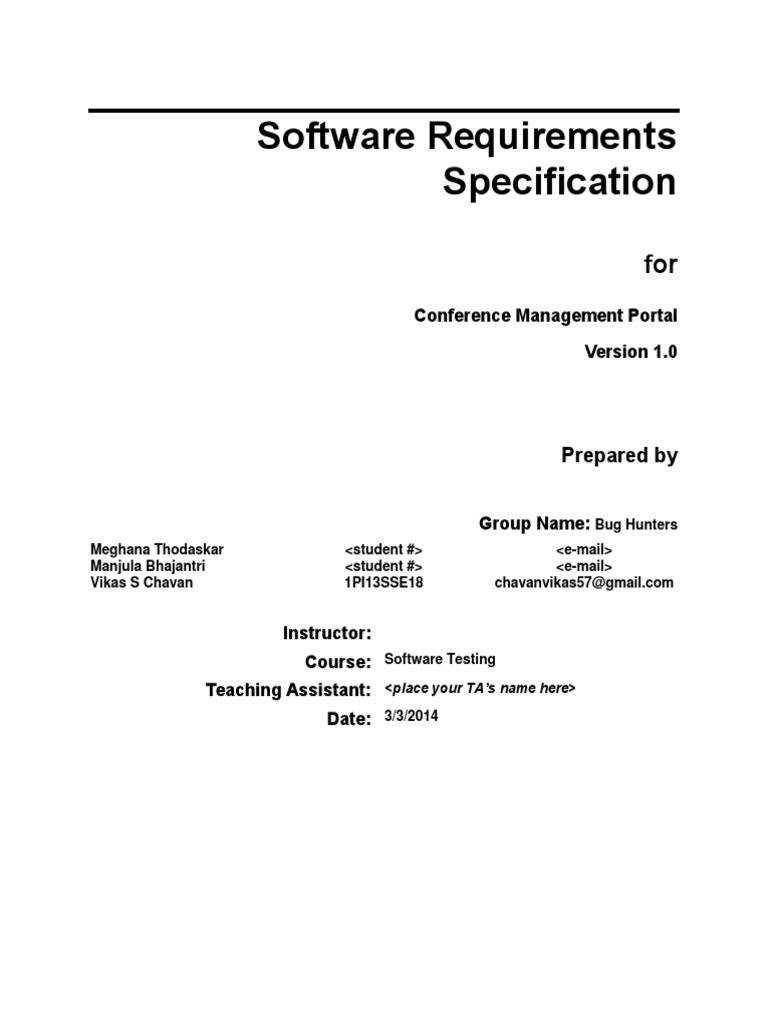 Software requirements specification (SRS) document template Download