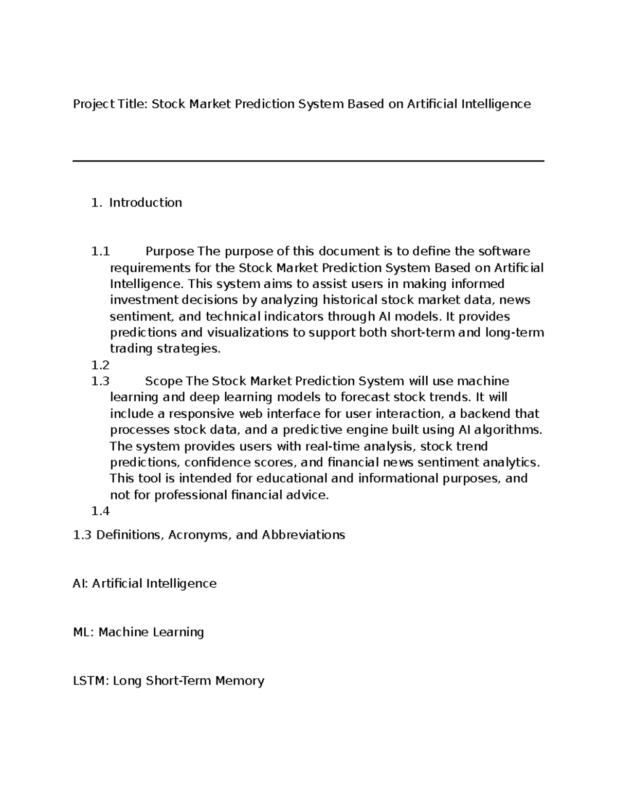 SRS for CSE320: Stock Market Prediction System Using AI Studocu