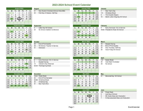 School Calendar St Bernard #39 s Academy