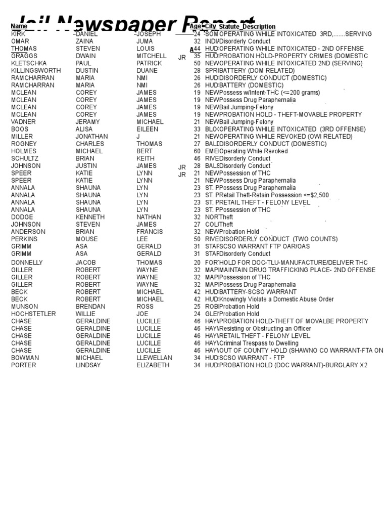 St Croix County Jail Bookings Sept 23 Download Free PDF Probation