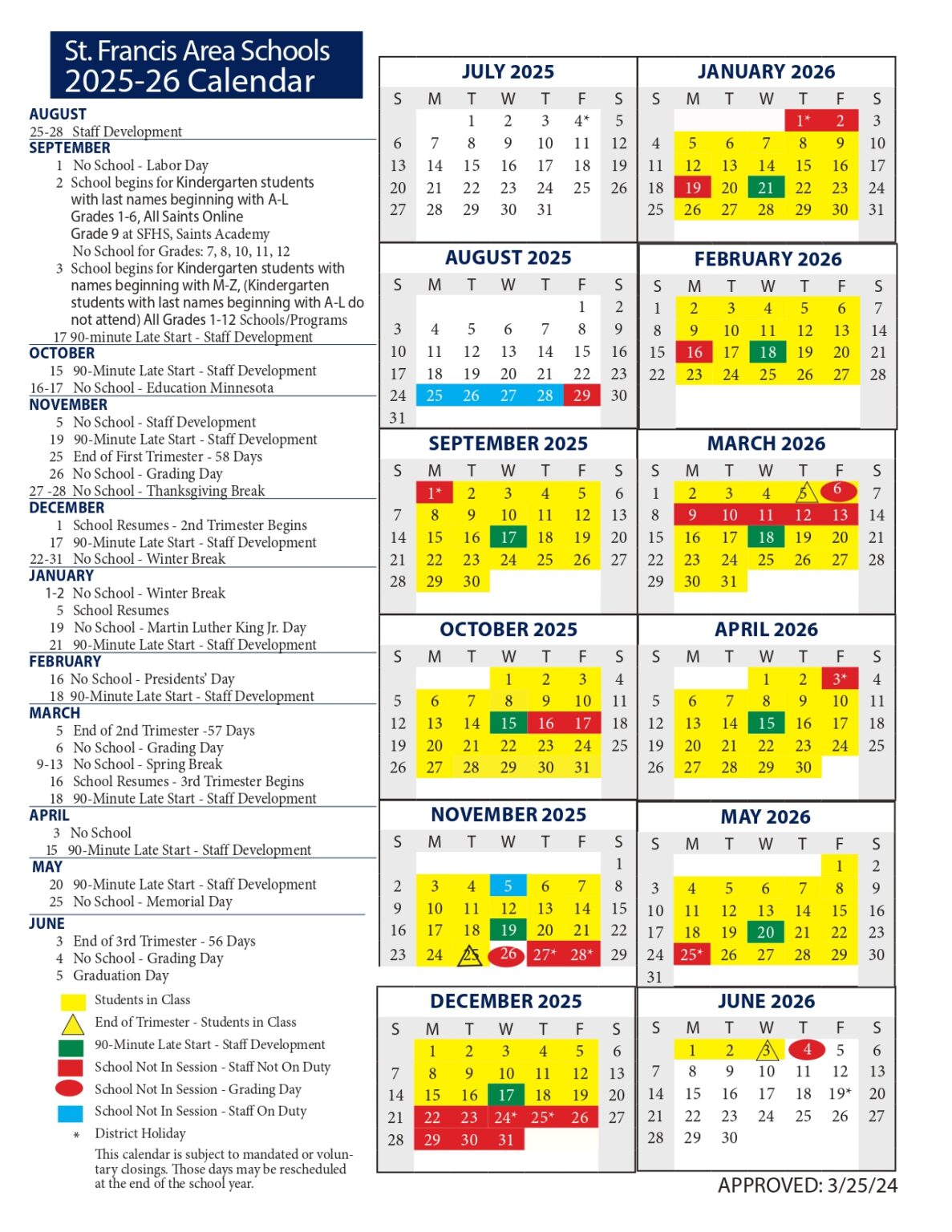 St Francis Area Schools MN Calendar 25 26 Revised PDF EduCounty