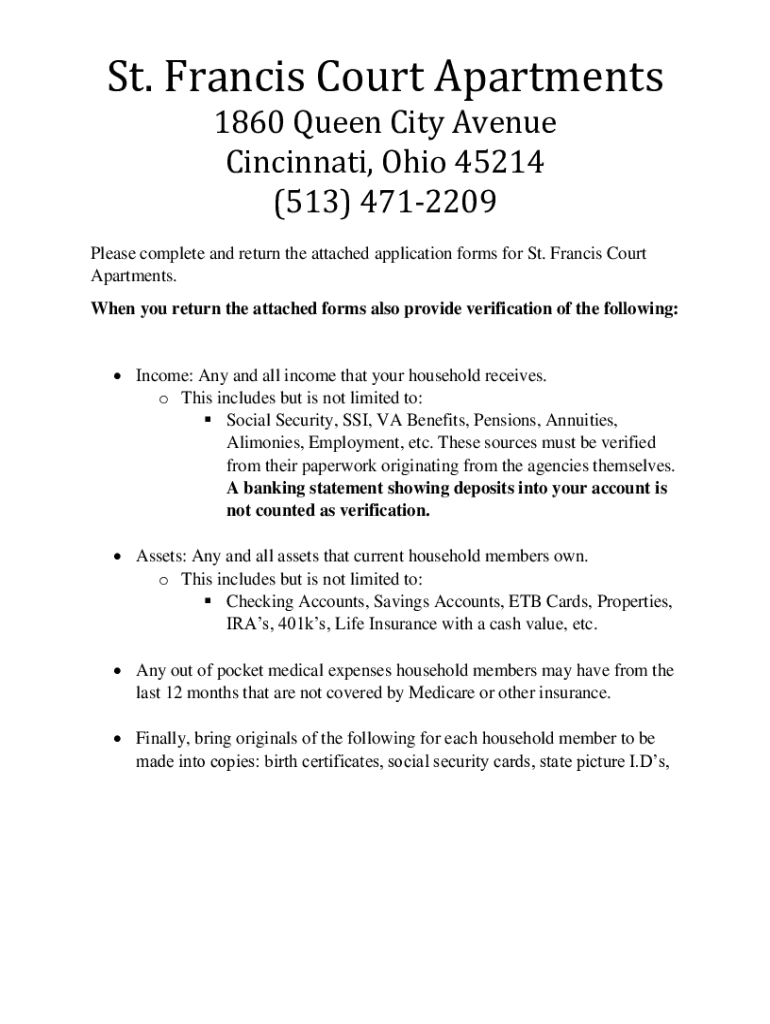 Fillable Online St Francis Court Apartments Apartments in Cincinnati