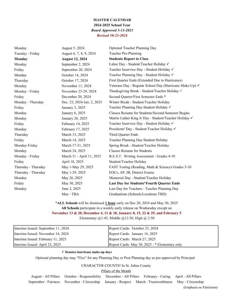 St Johns fl School District Calendar 24 25 Revised pdf EduCounty
