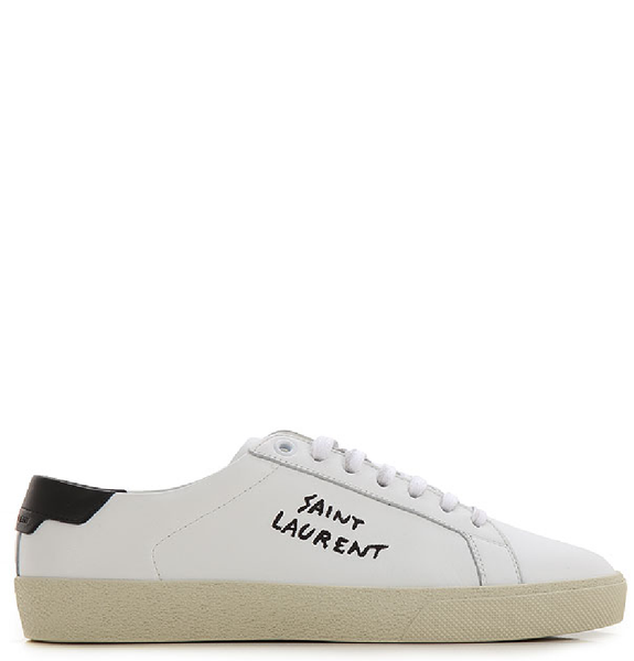 SAINT LAURENT Court Classic Logo Embroidered Leather Sneakers White