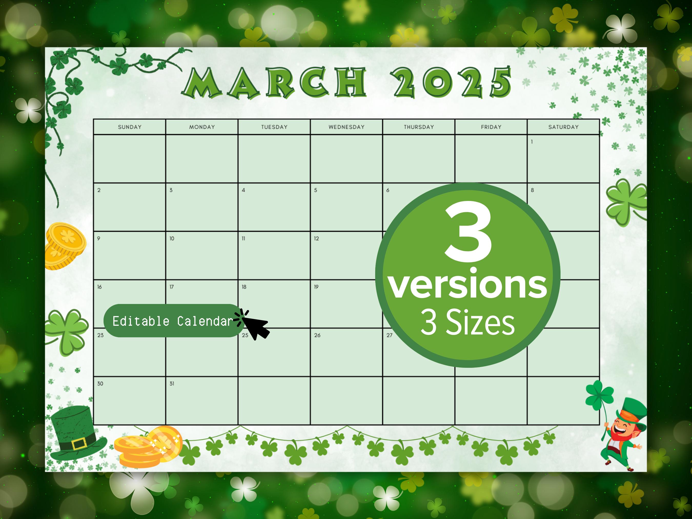 EDITABLE March 2025 Calendar Printable Calendar 2025 W/ St Patricks