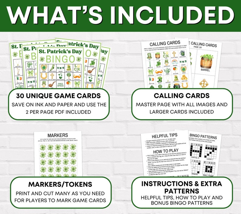 100 St Patrick #39 s Day Bingo Cards 1 per Page Instant Printable Pdf
