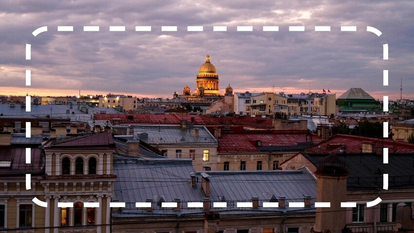 Den Sonnenuntergang von den Dächern St Petersburgs aus beobachten