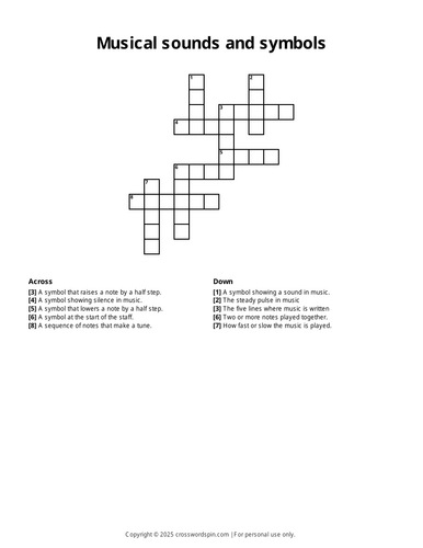 Musical sounds and symbols crossword (KS2) Teaching Resources