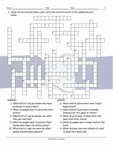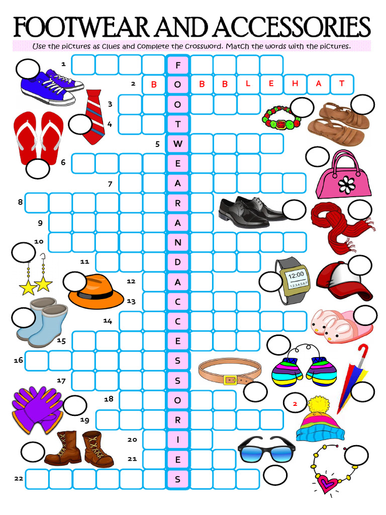 Clothing Accessories Footwear Crossword Puzzle Teaching Resources