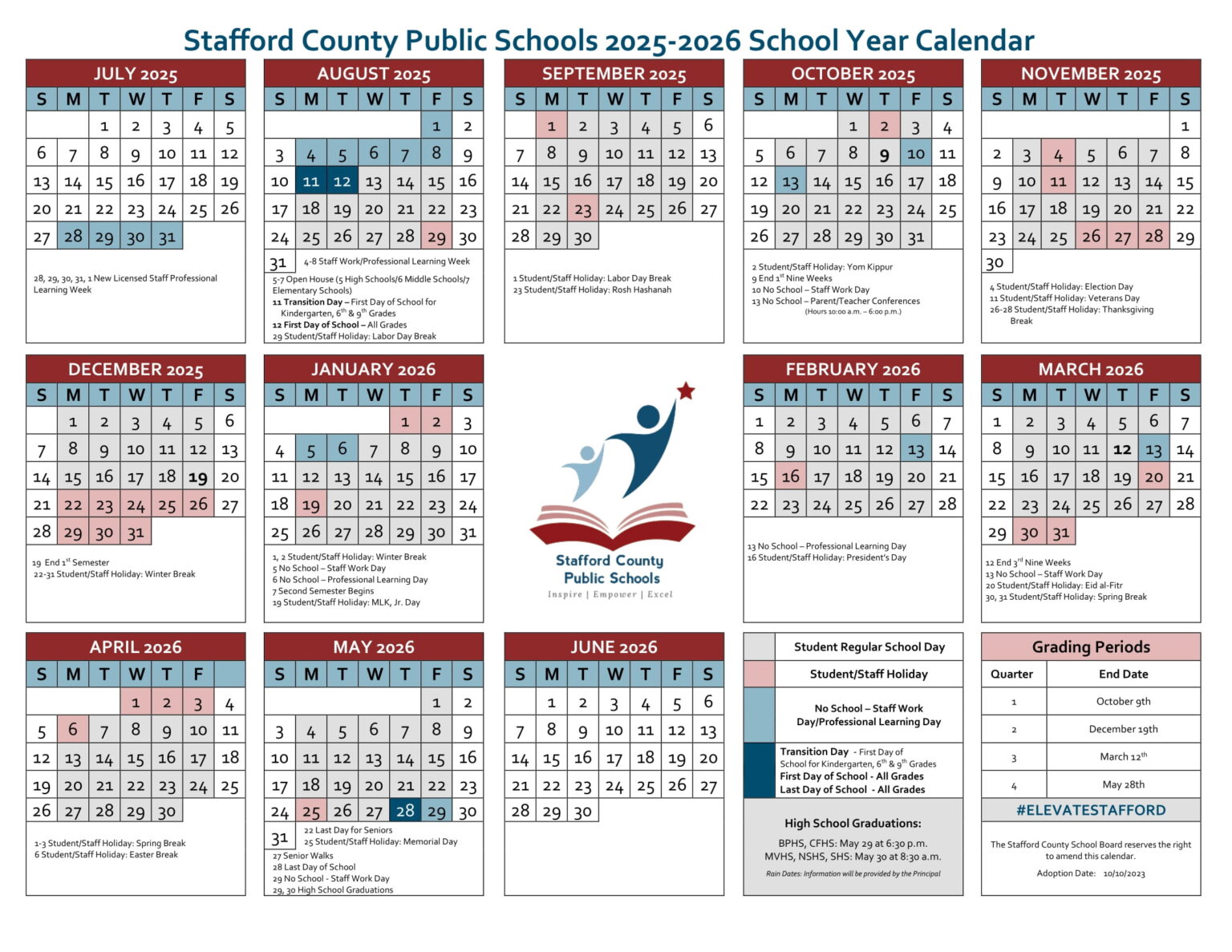 Stafford County Public Schools Calendar 2025 2026 (Holiday Breaks