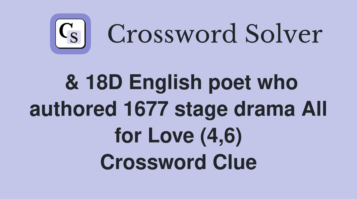 18D English poet who authored 1677 stage drama All for Love (4 6