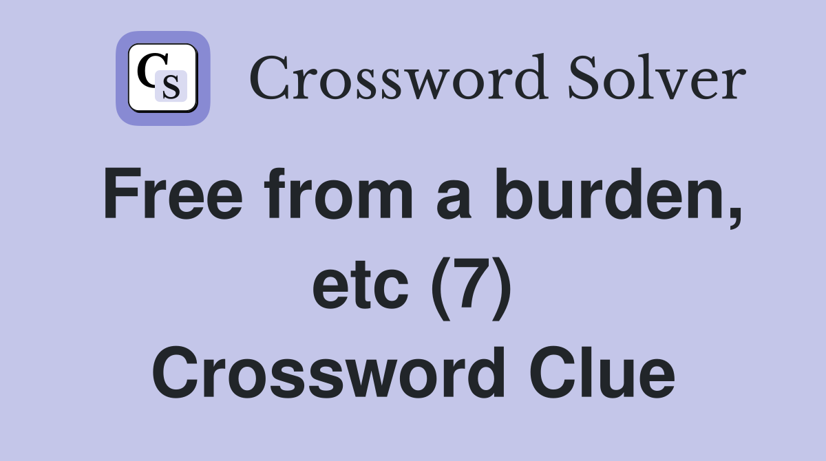 Free from a burden etc (7) Crossword Clue Answers Crossword Solver