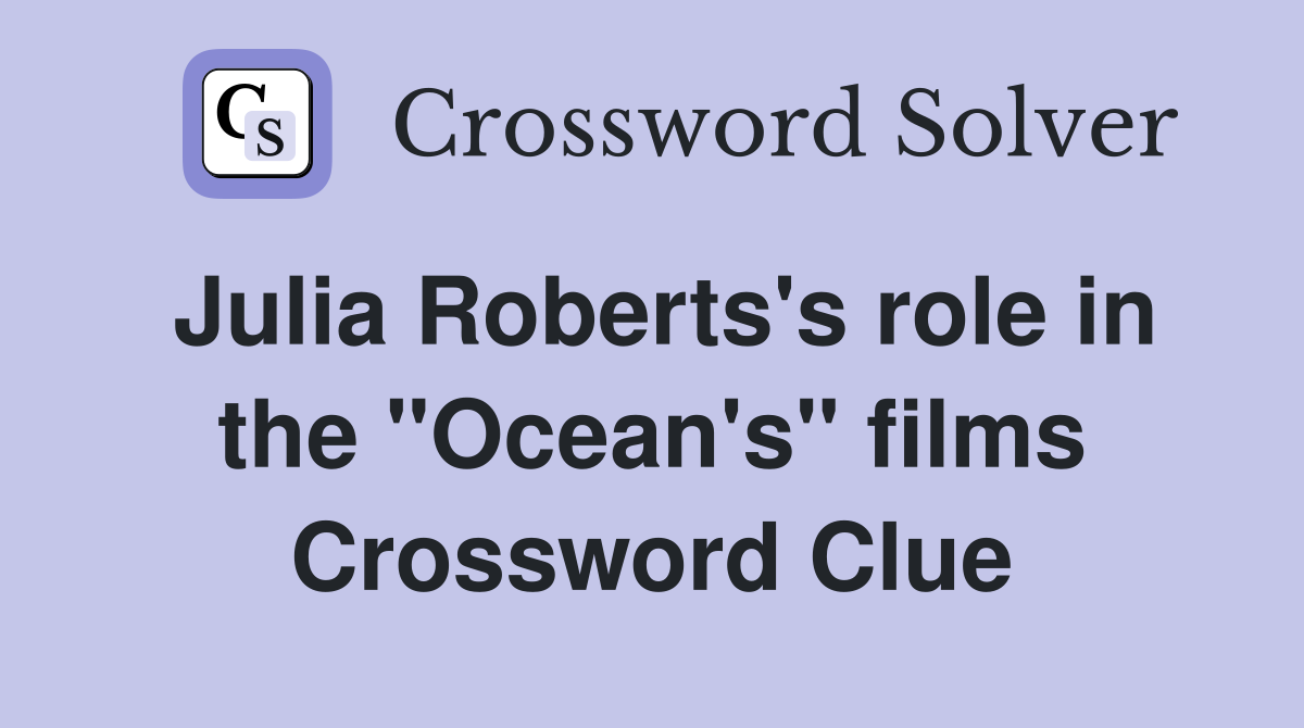 Julia Roberts #39 s role in the quot Ocean #39 s quot films Crossword Clue Answers
