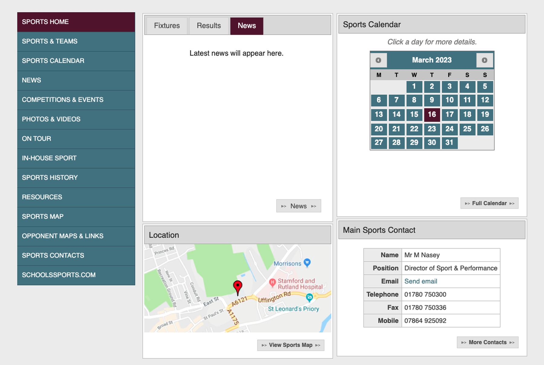 Sports Fixtures Stamford School