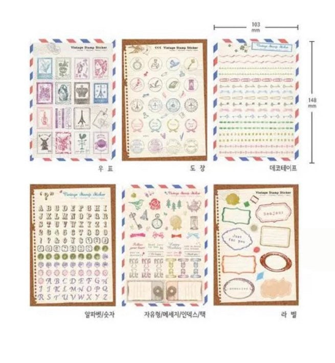 Retro Stamps Sticker Set 6 Different Sheets Stickers Stamp Retro