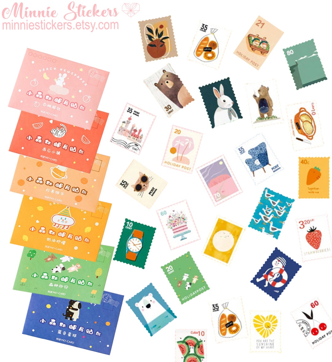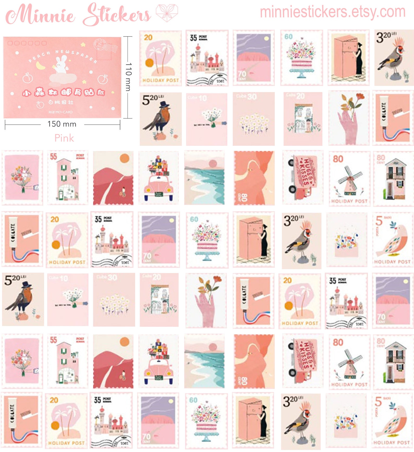 Postage Stamp Sticker Pack 10 Stickers Aesthetic Stickers Etsy