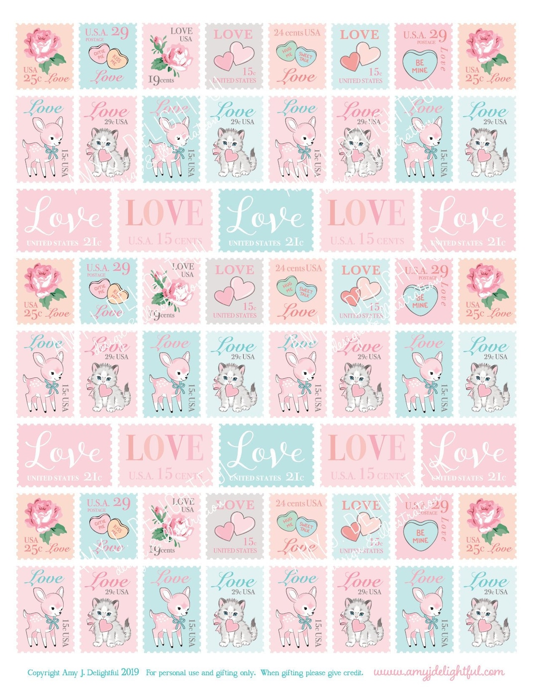 Printable LOVE Postage Stamp Style Stickers digital File Instant