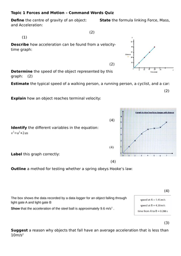 Physics Command Words Posters Forces Energy Worksheet and